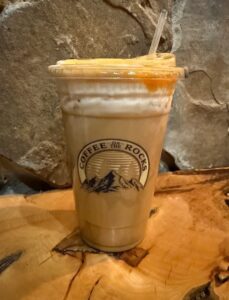 That intentionality shows in every detail. Coffee on the Rocks doesn’t just serve mass-produced chains—Wesley roasts the beans himself, which gives him control over flavor profiles and freshness. That hands-on approach feeds into the shop’s personality: locally minded, proudly crafted, and built to be a place where staff and guests feel seen.