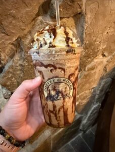 The menu goes beyond standard coffee offerings. Alongside classic espresso drinks you’ll find teas, smoothies, refreshers, sodas, and a handful of tasty small food items. But what really draws attention are the signature specialty drinks—often dessert-like in their decadence and complexity.