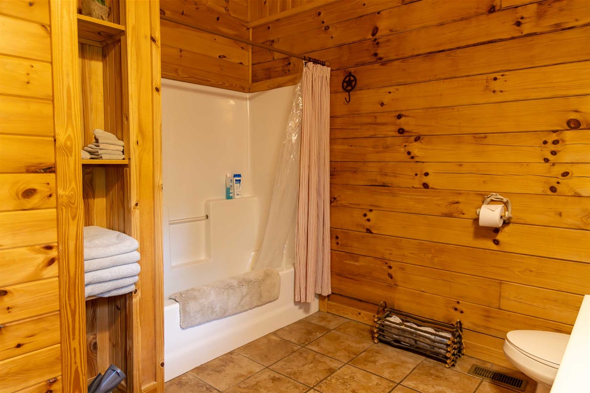 After a full day's activities in Branson, come home and relax in our cozy real log cabin. This wooded location will allow you to get away from it all! With 3 bedrooms and 2 baths, this cabin sleeps 9. Cook a meal in your fully stocked kitchen or gather around the fire pit in the back yard for a special evening. Our Eagle Nest Cabin is located just 10.5 miles from the 76 Strip and 11 miles from Branson Landing. This is a perfect spot to get away from the busy 76 strip and come home to relaxation and quiet. You are not in a development, so you don't have any neighbors right next door to you. You are so close to the great dining places at Big Cedar (only 8/10ths of a mile away) and Top of the Rock is only 1.5 miles away!! Perfect location to be able to get to things quickly but have your own space too.