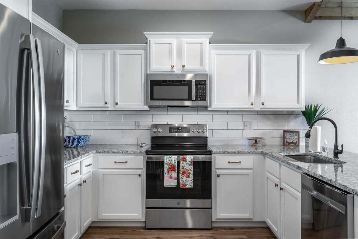- Amenities include a fully equipped kitchen with granite countertops, free Wi-Fi, flat-screen cable TVs, central air conditioning and heat, pack-n-play, laundry machines, electric fireplace, gas grill on the covered private deck, and more!