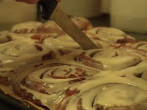 Cinnamon rolls ready to go in the oven at Old Fashioned Dough Company